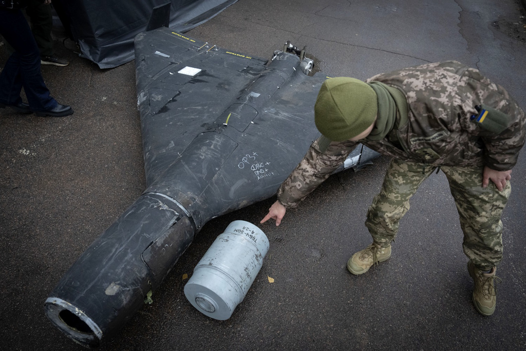 ▲烏克蘭近期發(fā)現(xiàn),俄羅斯在見證者(Shahed)自殺無人機內(nèi)塞木頭,專家推測俄軍正在測試新硬件,無人機的目標是進行偵察。 圖為遭擊落的俄軍見證者無人機及搭載的熱壓彈頭。美聯(lián)社