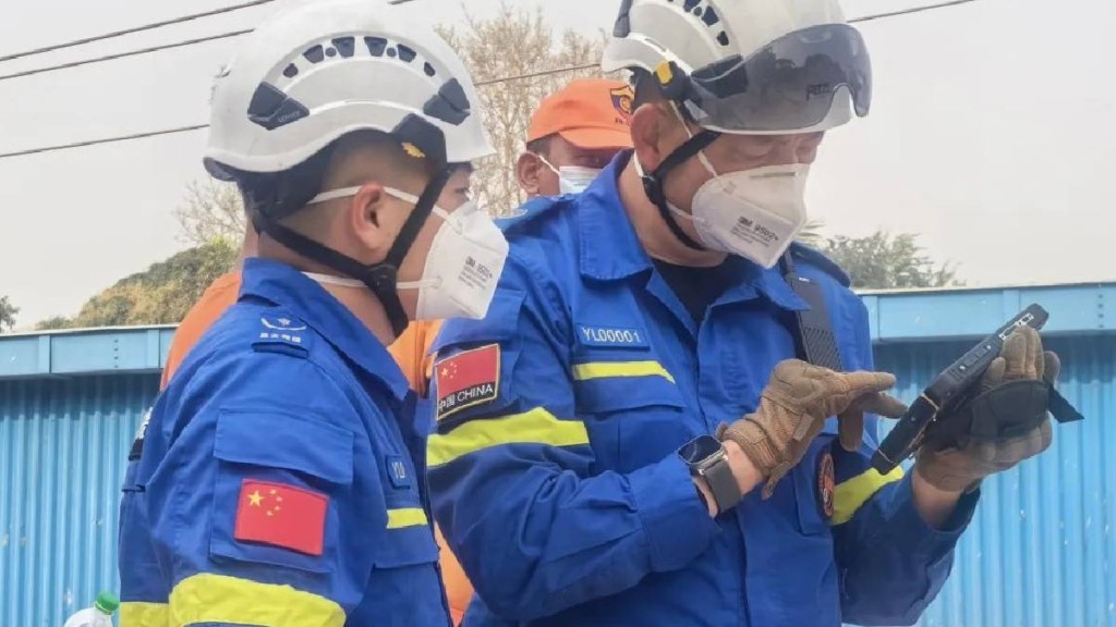 岳麓藍(lán)天救援隊(duì)30日在曼德勒救出1名幸存者。 人民網(wǎng).jpg