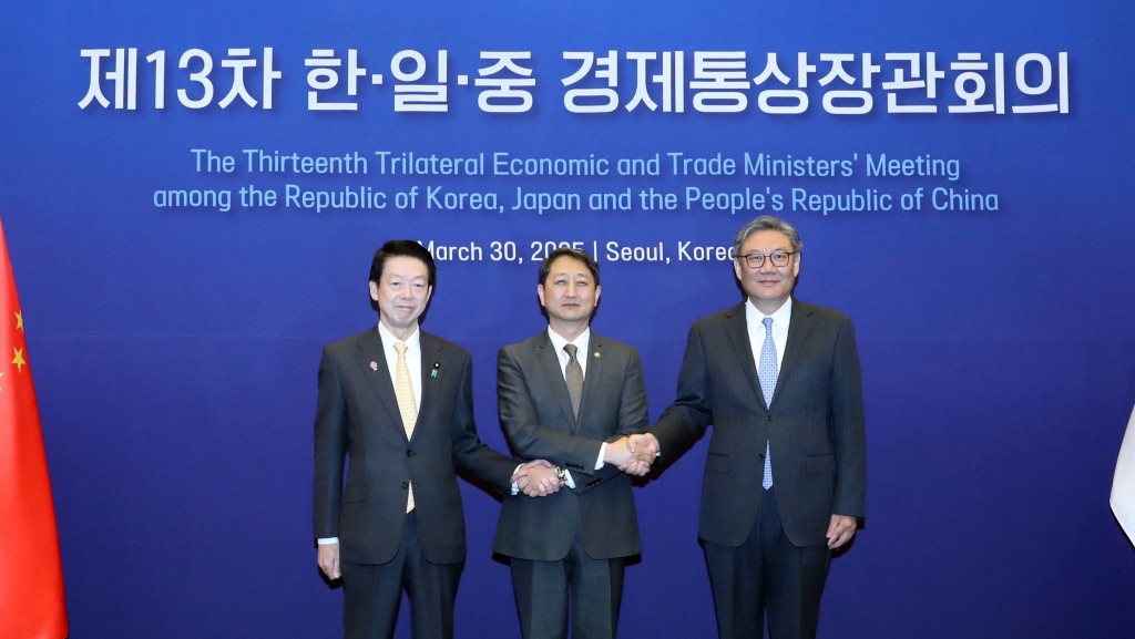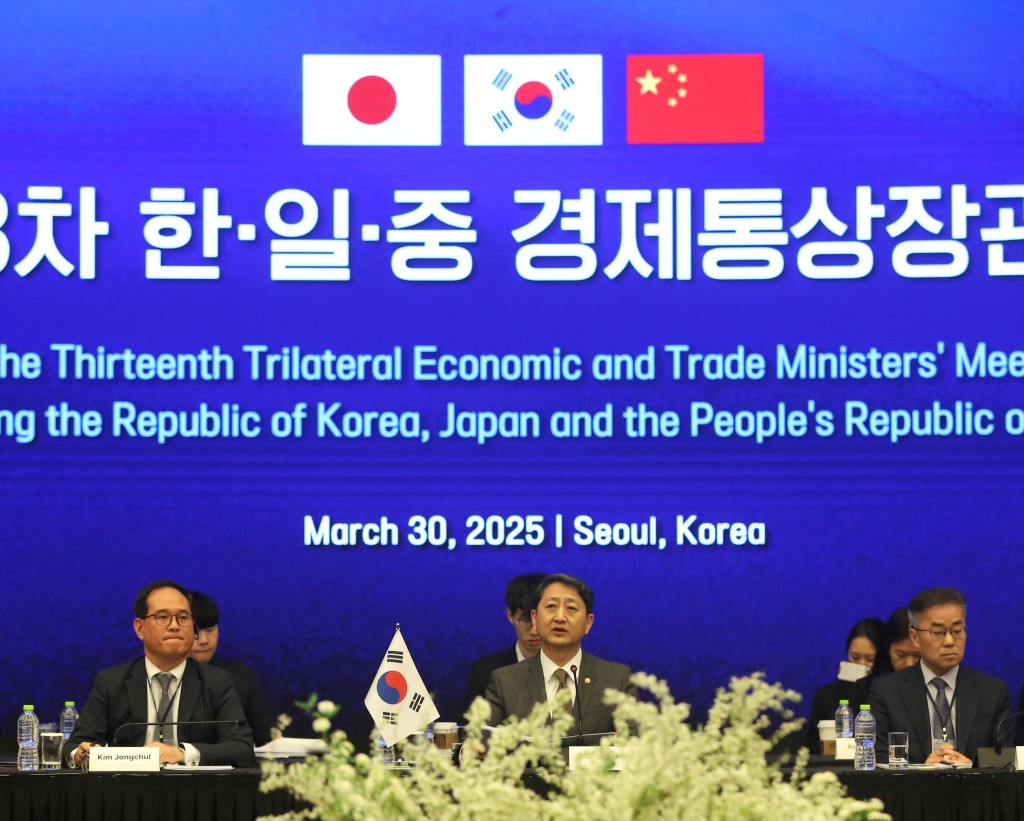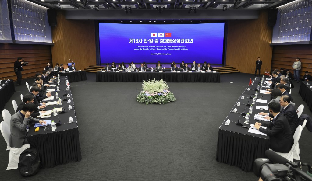 ▲第13次中日韓經(jīng)貿(mào)部長會議3月30日在韓國首爾舉行。 美聯(lián)社