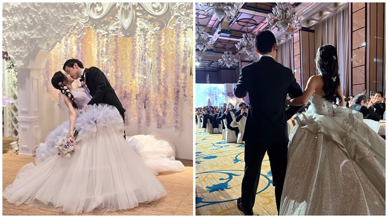 蔡頌思與日籍金融才俊老公Michihiro Nakaguchi的婚禮大前日在四季酒店舉行,蔡頌思的爸爸蔡冠深是香港新華集團(tuán)主席,同時(shí)亦是全國政協(xié)常委及香港中華總商會(huì)會(huì)長; 媽媽蔡關(guān)穎琴是新華集團(tuán)顧問及法律總監(jiān),亦是團(tuán)結(jié)香港基金顧問,曾獲銅紫荊星章、榮譽(yù)勛章、太平紳士等名銜,特首李家超上臺(tái)祝賀,前律政司司長梁愛詩為一對(duì)新人證婚,還有不少政商界兼名人好友出席,見證蔡頌思的人生大事。蔡頌思的婚禮相當(dāng)夢(mèng)幻,似十足公主和王子的童話式婚禮?,F(xiàn)場(chǎng)有設(shè)有不少以粉色為主的小色,喜帖設(shè)計(jì)亦見燙上金邊,還有多張巨型婚紗相,回禮亦選用了粉紫色包住的朱古力。嘉賓方面,蔡頌思邀請(qǐng)了不少好友,包括恩師張達(dá)明、TVB高層樂易玲,與及在選美場(chǎng)上認(rèn)識(shí)的女生。