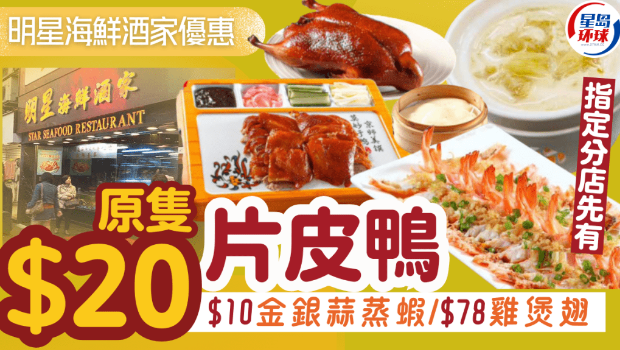 明星海鮮酒家周年優(yōu)惠 推$20/只京式片皮鴨 指定分店供應(yīng)