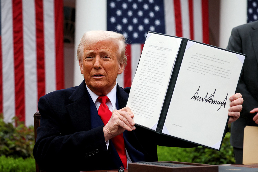 ▲美國(guó)總統(tǒng)特朗普2日宣布對(duì)臺(tái)灣課征32%關(guān)稅,他重申臺(tái)灣奪走美國(guó)芯片產(chǎn)業(yè),盡管臺(tái)積電赴美投資,但臺(tái)灣對(duì)美國(guó)課征68%關(guān)稅,因此對(duì)臺(tái)灣課32%關(guān)稅。(路透)