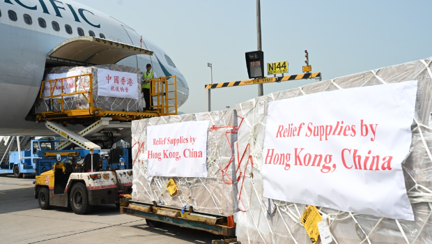 ▲20噸物資包括食物、飲用水、醫(yī)療包和臨時(shí)居所物料等關(guān)鍵物資,部分物資由社會(huì)熱心人士捐助。政府新聞處
