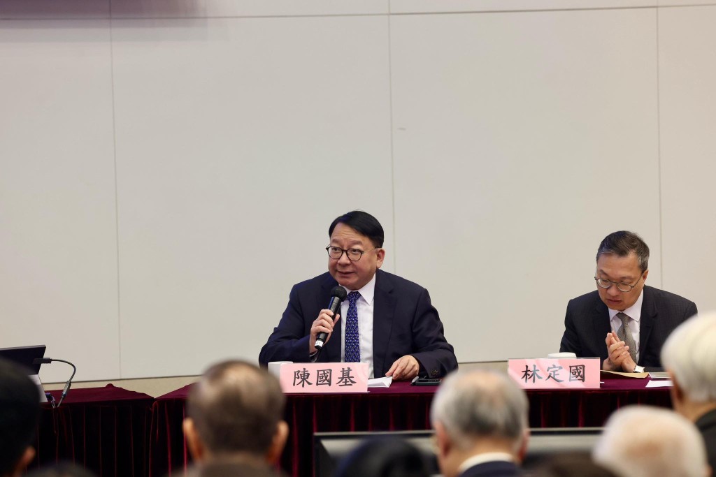 ▲政制及內(nèi)地事務(wù)局局長(zhǎng)曾國(guó)衛(wèi)在座談會(huì)上發(fā)言。李家超fb