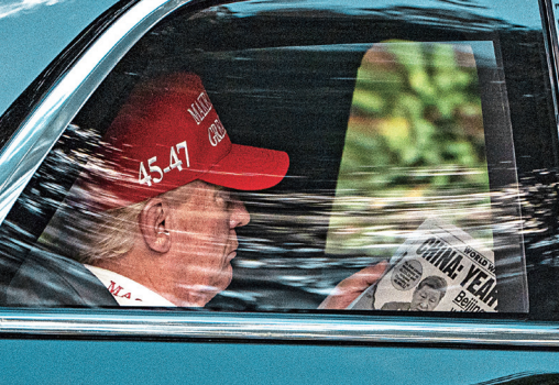 總統(tǒng)特朗普5日抵達(dá)佛羅里達(dá)州特朗普國家高爾夫球俱樂部時,正在車上翻閱《紐約郵報》。