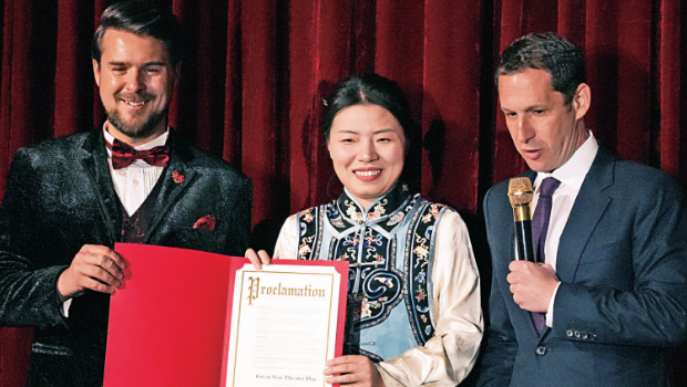 市長羅偉向羅杰(Roger Pincombe)、楚沛(Alice Chu)夫妻宣布4月5日為“大明星戲院日”。