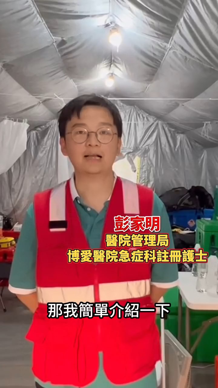 博愛醫(yī)院急癥科注冊(cè)護(hù)士彭家明在片中介紹醫(yī)療帳幕的設(shè)施,包括醫(yī)療團(tuán)隊(duì)出動(dòng)時(shí)所需的背囊,內(nèi)有截肢儀器及擠壓綜合癥所需的藥物。他指今次醫(yī)管局準(zhǔn)備了70多種藥物,涉及止痛藥物、腸胃藥、補(bǔ)充身體水份的藥物。