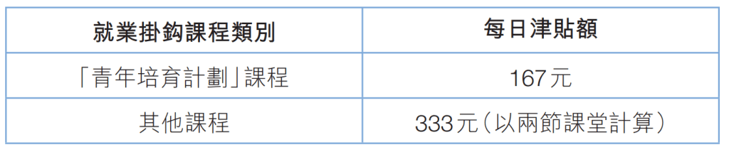 為期7天或以上的就業(yè)掛鉤課程設(shè)有再培訓(xùn)津貼,津貼金額如下: