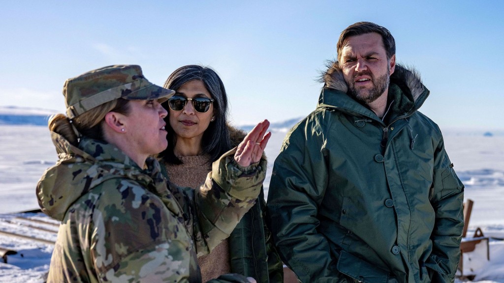 3月28日,萬斯在未經(jīng)邀請下,率領(lǐng)國家安全顧問華爾茲、能源部長賴特等人訪問格陵蘭島。由于此行完全不受當(dāng)?shù)鼐用翊?,原本的“文化交流”變成象征性地短暫訪問島上的美軍皮圖菲克基地。萬斯發(fā)表了一番挑釁當(dāng)?shù)鼐用竦难哉?,批評丹麥“為格陵蘭島人民做得不夠多”,呼吁格陵蘭考慮“接受美國的領(lǐng)導(dǎo)”。