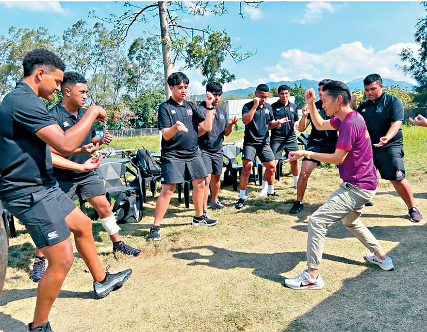 ▲鐘浩聲向來港交流的新西蘭學(xué)生,示范舞貔貅。