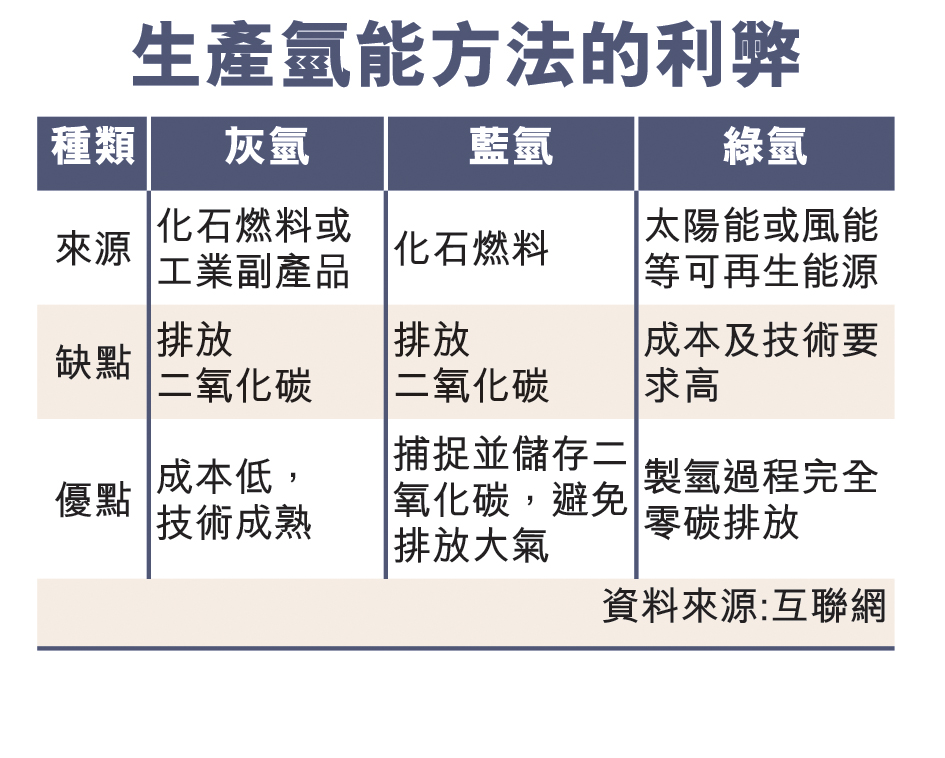 香港大學(xué)機(jī)械工程系教授梁耀彰亦指,現(xiàn)時(shí)香港制造的氫能主要是煤氣公司供應(yīng),因?yàn)槊簹庵杏幸话氤煞譃闅錃?,煤氣公司抽出氫氣,再接駁煤氣管網(wǎng)便可供應(yīng)客戶(hù),但相關(guān)氫能成本高昂,且屬有碳排放的灰氫,影響減碳功效。另外,煤氣公司亦于堆填區(qū)收集沼氣,然后轉(zhuǎn)化為綠氫,但都屬小規(guī)模項(xiàng)目,成本亦較高。
