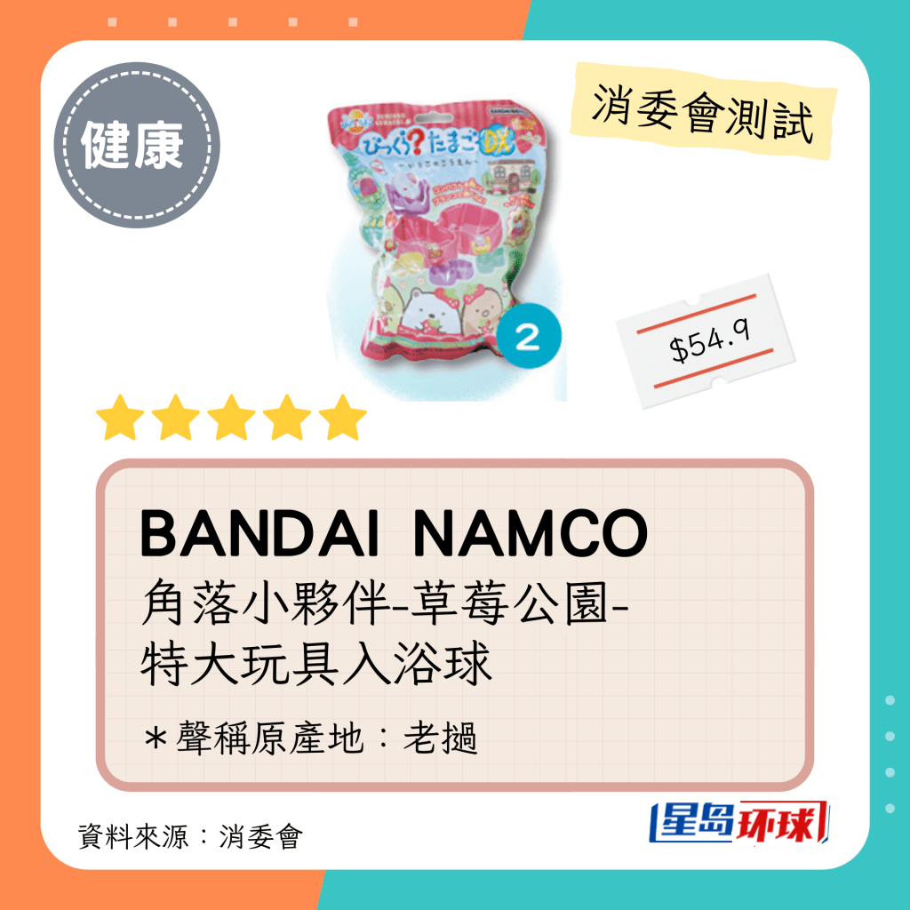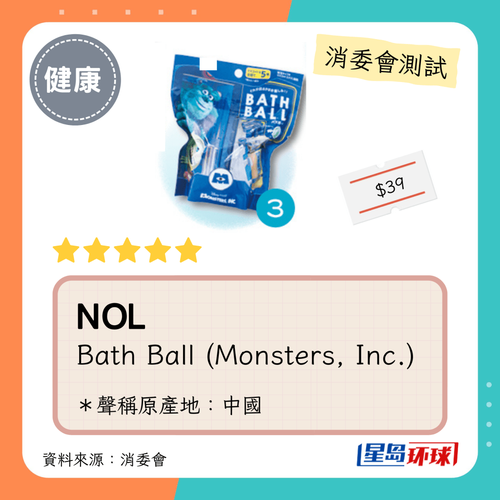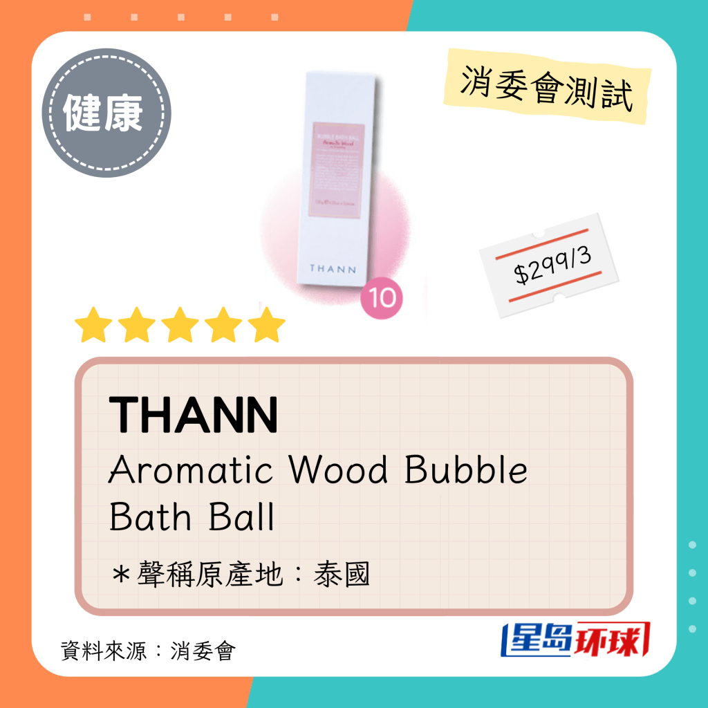 消委會5星沐浴球名單: