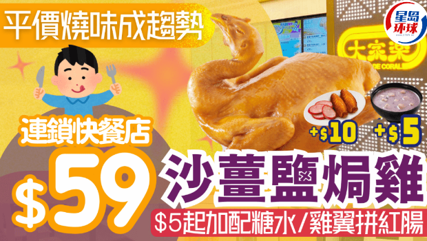 平價(jià)燒味優(yōu)惠成趨勢(shì)!大家樂(lè)推$59沙姜鹽焗雞,一連3日供應(yīng)