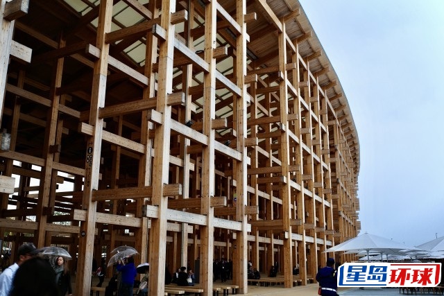 大阪世博另一亮點(diǎn)便是“大屋根”(Grand Roof),全長(zhǎng)超過2公里、高12至20米,總面積達(dá)6萬平方米,被《健力士世界紀(jì)錄大全》認(rèn)定為“全世界最大的木造建筑”。該結(jié)構(gòu)以圓形環(huán)繞會(huì)場(chǎng),由建筑師藤本壯介設(shè)計(jì),在現(xiàn)代建筑中融合日本傳統(tǒng)結(jié)構(gòu)工法,特別采用傳統(tǒng)的“貫”榫接技術(shù),并選用了采用日本國產(chǎn)杉木、檜木及部分歐洲赤松,展現(xiàn)了日本建筑的精湛工藝。