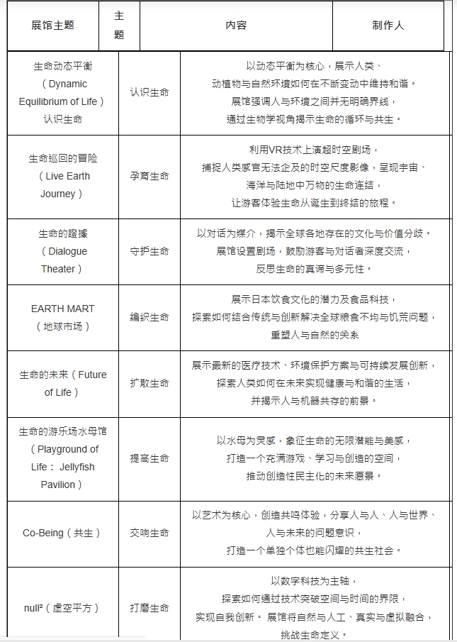 大阪世博的8大主題展館(Signature Pavilions),由8位跨領(lǐng)域的日本頂尖制作人制作,涵蓋“認(rèn)識(shí)生命”“孕育生命”“守護(hù)生命”等多元視角,打造實(shí)體與虛擬結(jié)合的沉浸式體驗(yàn)。