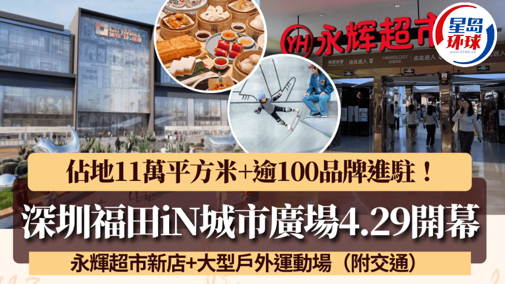 深圳新商場2025|深圳福田in城市廣場快將開幕! 深圳in城市廣場完成翻新工程后將于4月29日重新開業(yè),占地11萬平方米,約有近100個(gè)零售及餐飲品牌進(jìn)駐,包括大型超市永輝超市、八合里牛肉火鍋、點(diǎn)都德等,另設(shè)有近3萬平方米的大型戶外運(yùn)動(dòng)廣場,涵蓋滑板場、網(wǎng)球場及足球場等,集購物、運(yùn)動(dòng)、休閑及美食于一身!