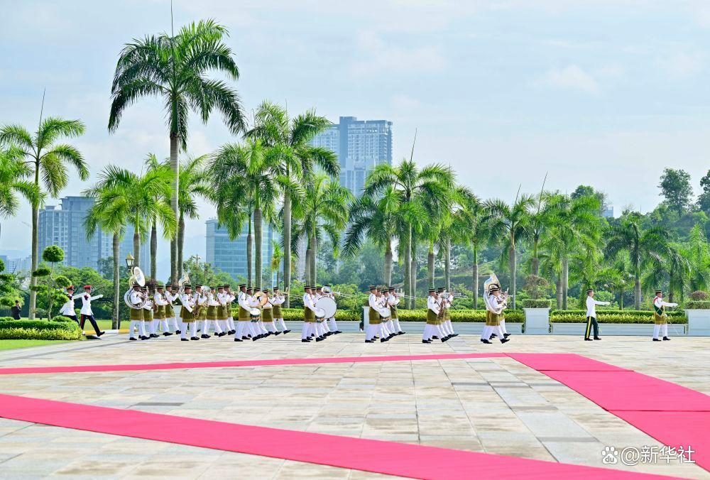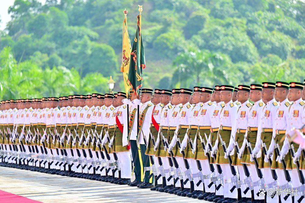 習(xí)近平乘車抵達(dá)時,易卜拉欣和馬來西亞總理安瓦爾在下車處熱情迎接。兩國元首登上檢閱臺,軍樂團(tuán)奏中馬兩國國歌,鳴禮炮21響。習(xí)近平檢閱儀仗隊。兩國元首進(jìn)入國家王宮大廳,同雙方陪同人員握手致意。