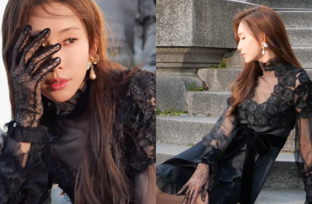 林志玲公開巴黎30秒片,黑紗透視洋裝50歲身材全看光