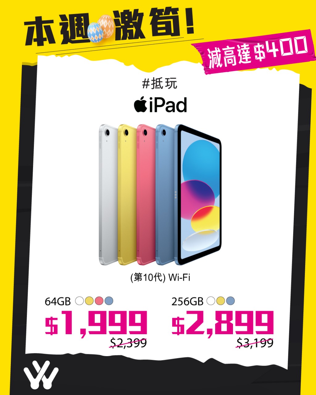 連鎖電子產(chǎn)品零售商衛(wèi)訊Wilson日前推出超抵iPad優(yōu)惠,由即日起至4月30日期間,購(gòu)買iPad(第10代)Wi-Fi的64GB及256GB兩款港版機(jī),即減高達(dá)$400。優(yōu)惠期間,64GB港版會(huì)由每部$2399減至$1999,而256GB港版則由建議零售價(jià)$3199減至$2,899。