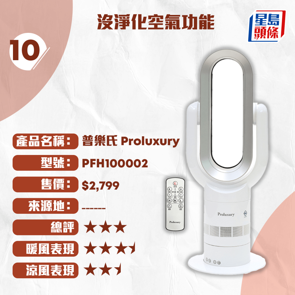 10.普樂氏 Proluxury / PFH10002 / $2,799 / 3星