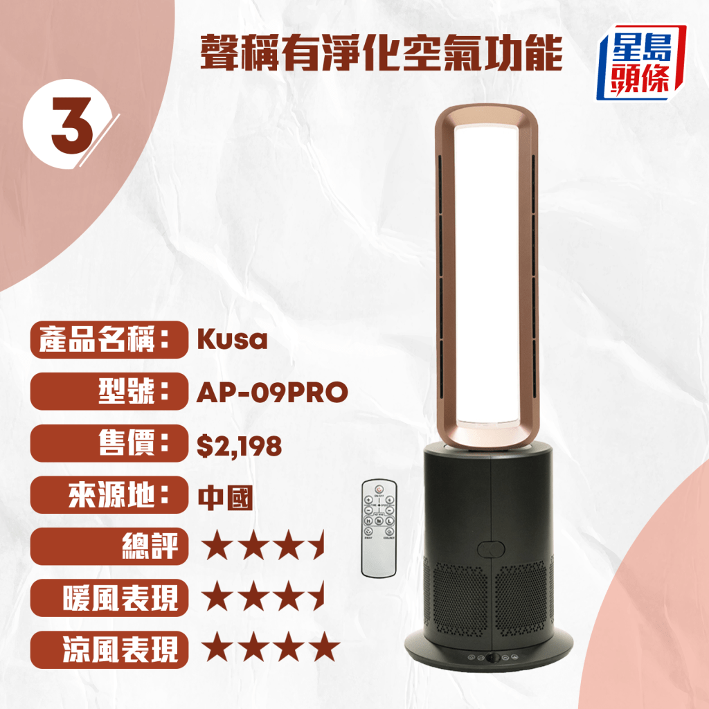 3.Kusa / AP-09PRO / $2,198 / 3.5星