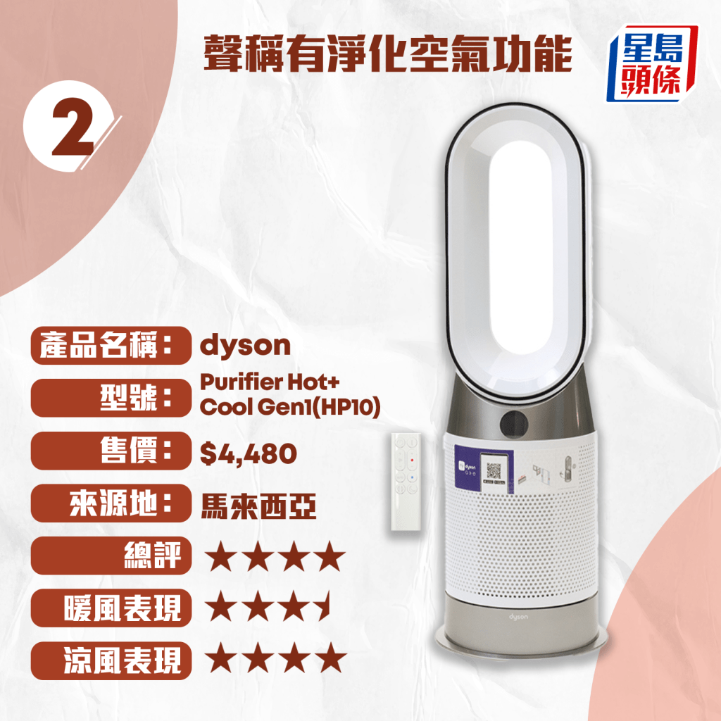 2.dyson / Purifier Hot+Cool Gen1(HP10) / $4,480 / 4星