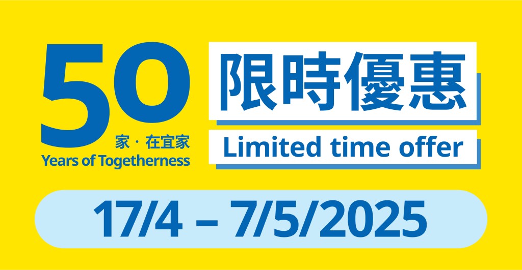 ▲為慶祝進軍香港50周年,IKEA由4月17日起連續(xù)11個星期,將分階段推出不同精選產(chǎn)品優(yōu)惠