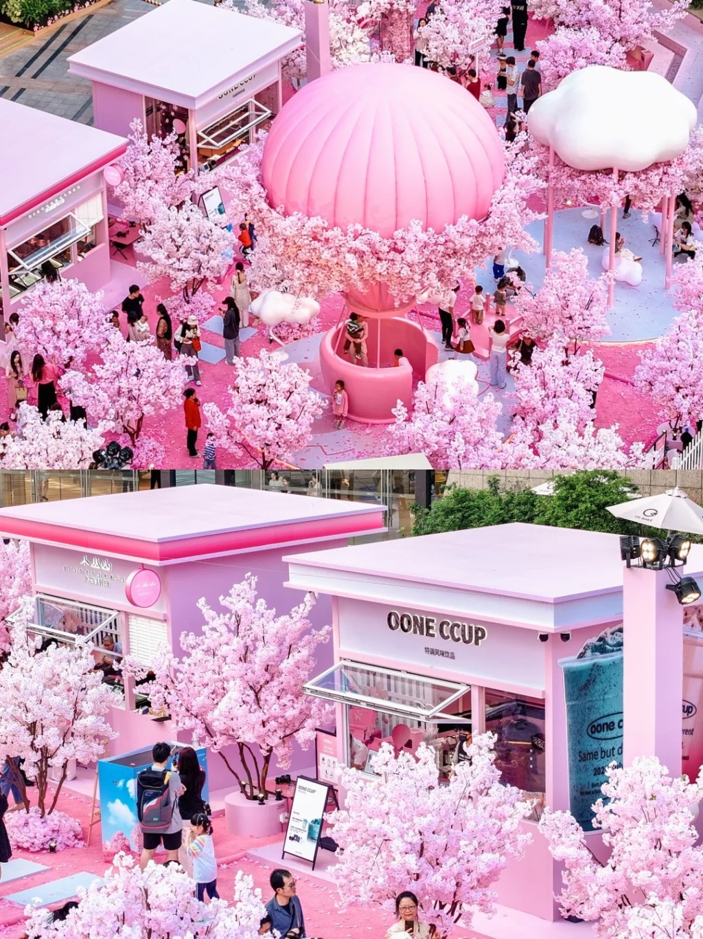“云櫻之境”是深圳布吉萬(wàn)象匯商場(chǎng)推出的一項(xiàng)特別企劃,旨在打造一處以櫻花為主題的浪漫場(chǎng)景。據(jù)商場(chǎng)介紹,展覽包括櫻花大道、巨型粉紅熱氣球、櫻花鏡面電話亭等多個(gè)亮點(diǎn)設(shè)計(jì),并搭配櫻花主題美食及快閃店,如抹茶冰淇淋和櫻花形狀面包等,為游客提供一站式拍照、品味和體驗(yàn)的場(chǎng)所。
