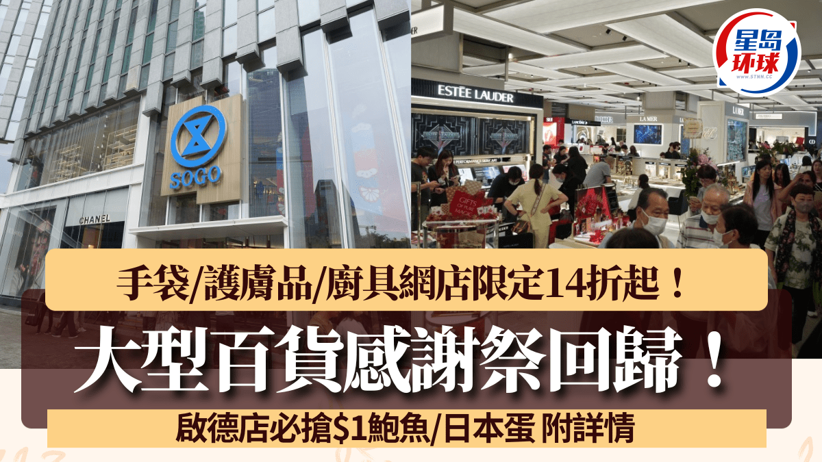 SOGO感謝祭3大優(yōu)惠攻略!手袋/行李箱/化妝護(hù)膚品/廚具 網(wǎng)店限定14折起