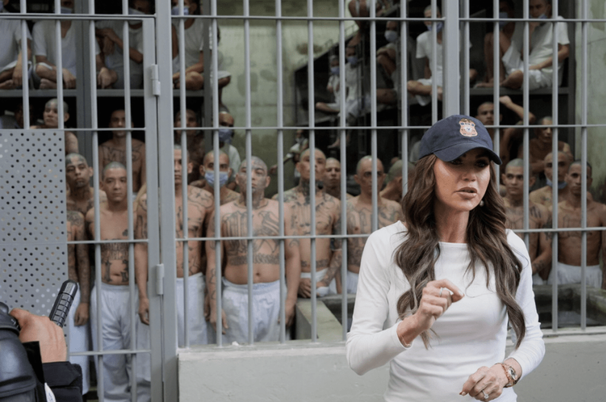 ▲諾姆近期訪問薩爾瓦多監(jiān)獄時,被媒體拍到佩戴昂貴手表。路透社