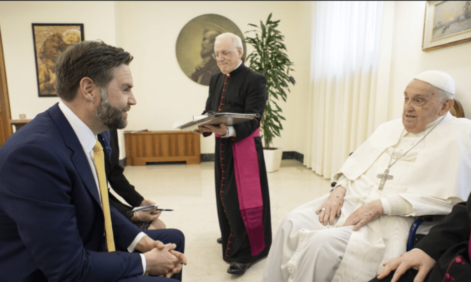 ▲教宗方濟(jì)各離世前一天接見了美國(guó)副總統(tǒng)萬(wàn)斯。美聯(lián)社