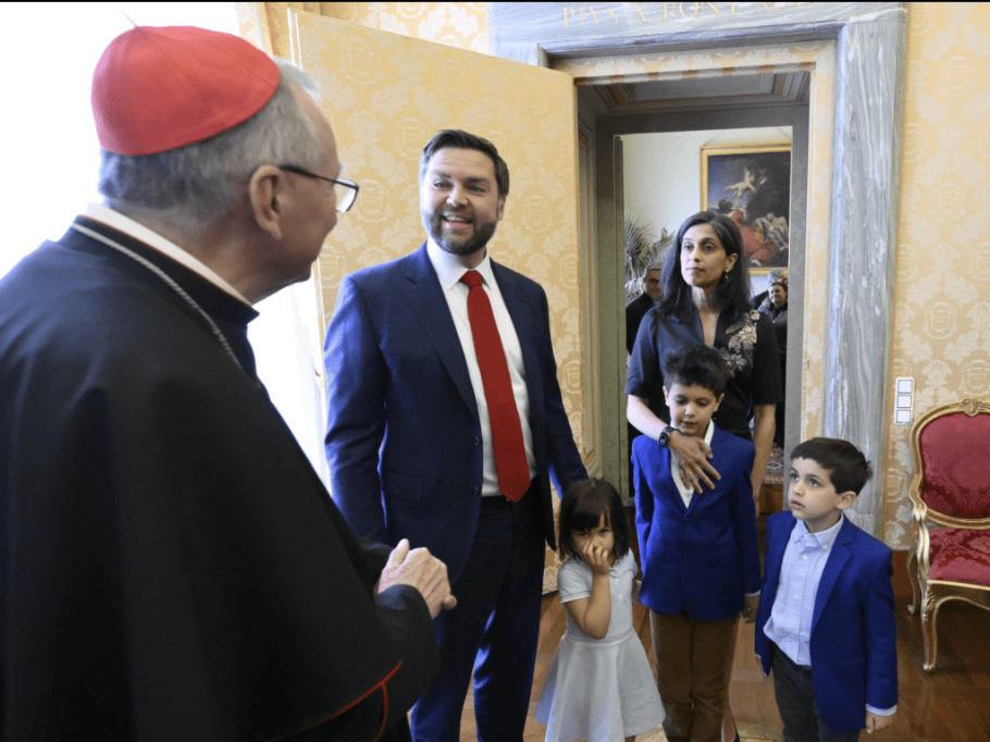 ▲美國(guó)副總統(tǒng)萬(wàn)斯帶同妻兒到訪梵蒂崗。美聯(lián)社