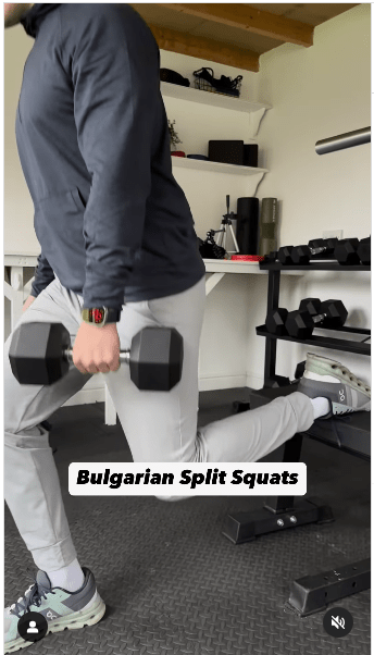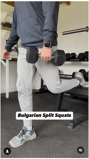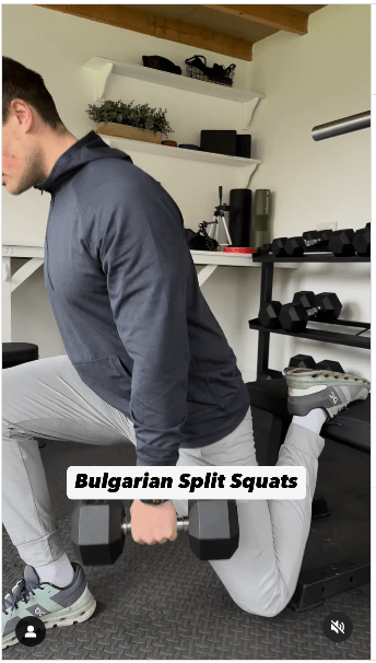 2. 保加利亞分腿蹲步驟:重復動作。 (IG@olliethompsonhealth)