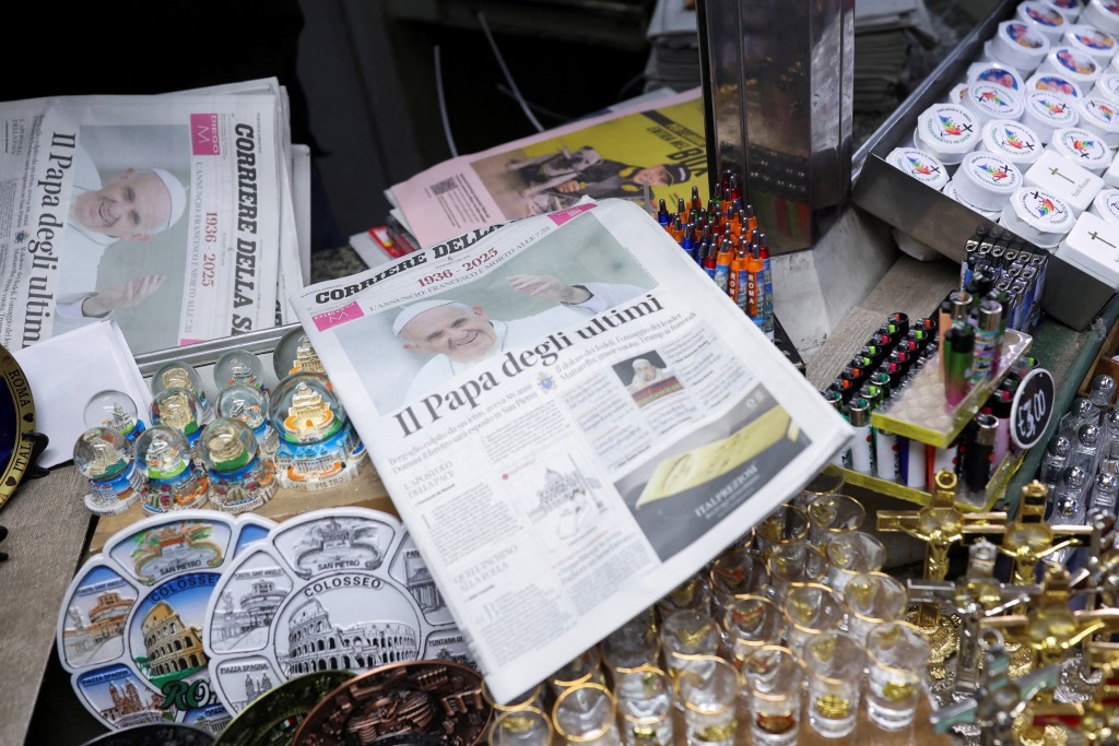 ▲報(bào)章報(bào)道教宗死訊。路透社