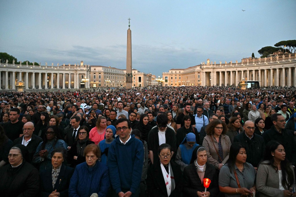 信眾在圣伯多祿廣場(chǎng)哀悼教宗。法新社
