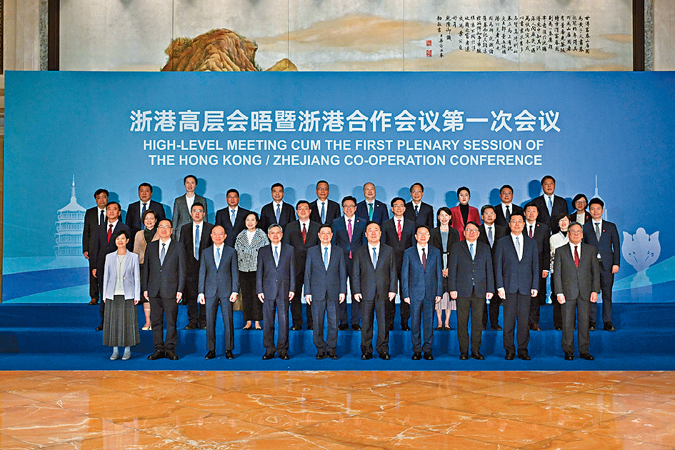 李家超昨日早上與浙江省委書(shū)記王浩共同出席浙港高層會(huì)晤暨浙港合作會(huì)議第一次會(huì)議,見(jiàn)證“浙港合作會(huì)議”機(jī)制正式成立,象征兩地全方位交流合作再上新臺(tái)階。中央港澳工作辦公室、國(guó)務(wù)院港澳事務(wù)辦公室分管日常工作的副主任周霽亦有出席會(huì)議。