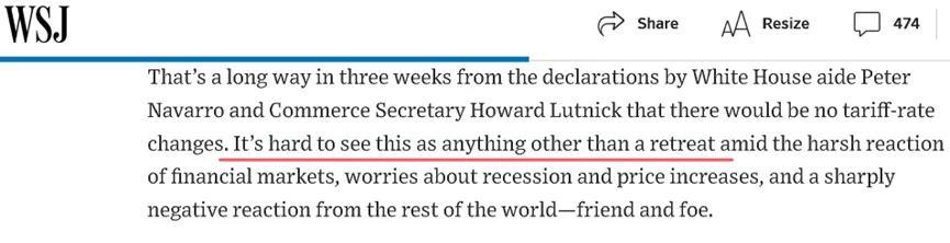 這篇社評中的核心觀點(diǎn)其實(shí)很直白,認(rèn)為自4月初宣布對全世界加征“對等關(guān)稅”,并對中國進(jìn)行極限施壓以來,白宮在過去的這20多天一直在不斷做出調(diào)整:先是給除中國以外的其他一些國家寬限90天,然后是給蘋果、英偉達(dá)等大企業(yè)開后門,再到如今準(zhǔn)備大幅減輕對中國的關(guān)稅。