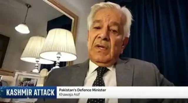 ▲巴基斯坦國防部長阿西夫接受采訪,圖源:英國天空新聞臺