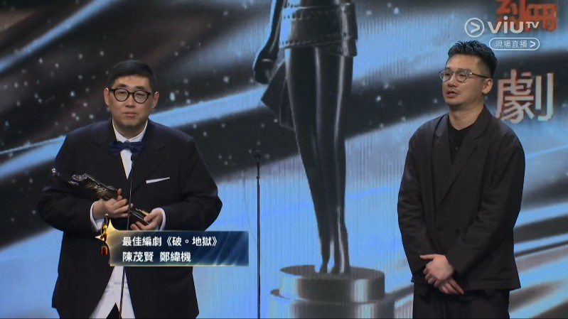 22:07 陳法拉與張家輝頒發(fā)最佳編劇,由《破·地獄》的陳茂賢、鄭緯機奪得。