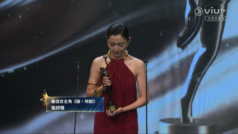 22:24 由吳彥祖及曾國祥頒發(fā)最佳女主角,由衛(wèi)詩雅《破·地獄》奪得,衛(wèi)詩雅在臺上與臺下哭成淚人的“哥哥”朱栢康說:“阿哥我哋得咗!”另外她又多謝老公周祉安。