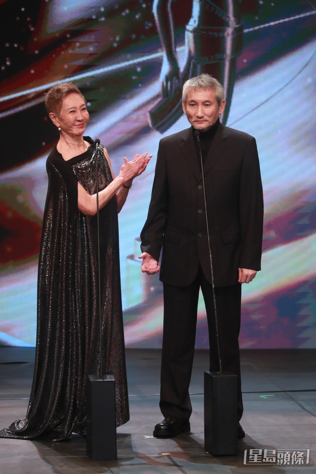 ▲林青霞為徐克及施南生頒發(fā)終身成就獎。