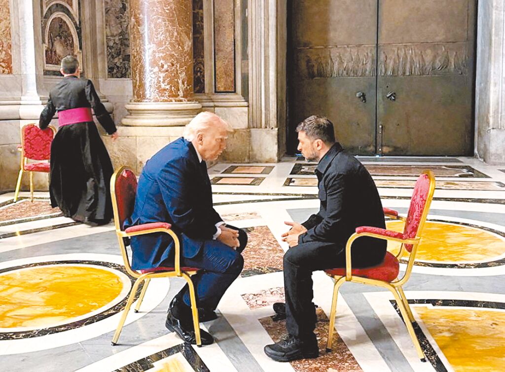 特朗普許多談判目標(biāo)尚未實(shí)現(xiàn),俄烏戰(zhàn)爭仍在持續(xù),且特朗普已多次揚(yáng)言撤手不管。圖為特朗普與澤連斯基4月26日在梵蒂岡會(huì)談。