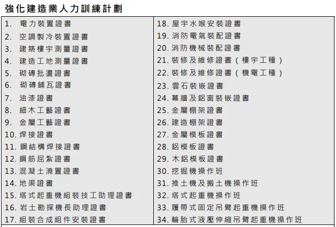 “短期建造業(yè)專門課程”=永居專屬,34門課任你選!