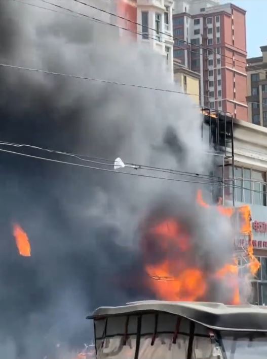 ▲涉事飯店火勢(shì)猛烈。