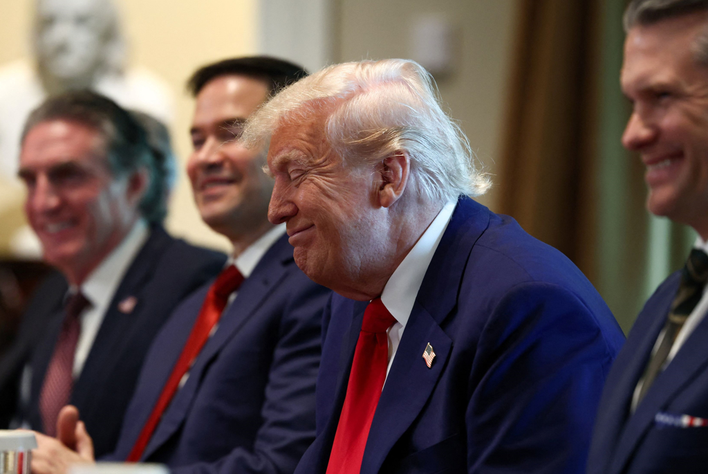 ▲美國(guó)總統(tǒng)特朗普4月30日在白宮舉行內(nèi)閣會(huì)議的神情。(路透)