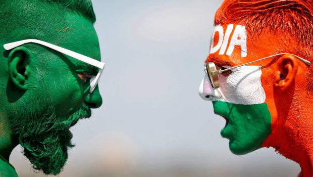 ▲2021年10月23日,兩名男子在臉上涂鴉印度和巴基斯坦國(guó)旗。路透社