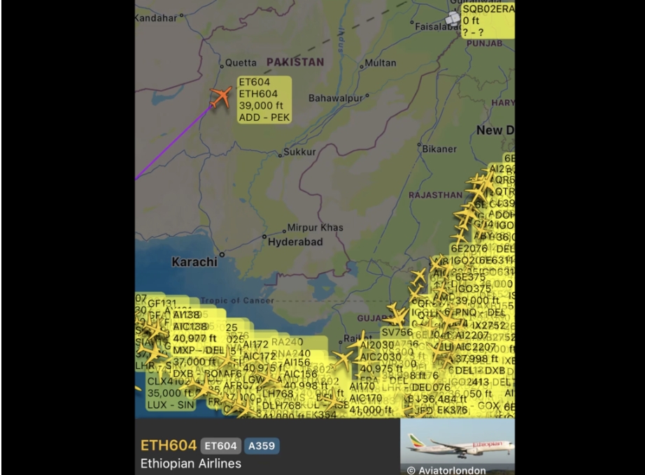 印度為了報復(fù)巴基斯坦先前在克什米爾控制區(qū)導(dǎo)致26死的恐攻,7日凌晨“精準”空襲巴基斯坦,雙方激烈交火更有戰(zhàn)機遭到擊落,民航幾乎全面凈空,一架埃塞俄比亞航空(Ethiopian Airlines)航班,竟然“勇闖禁區(qū)”直飛北京,堂而皇之地飛越巴基斯坦領(lǐng)空,“大無畏”的舉動迅速在社群媒體上掀起熱議。