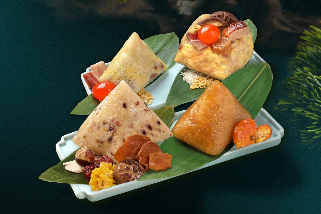 三元及第套裝:特級元貝八寶裹蒸粽、金腿花生咸肉粽及黃金柑桔鹼水粽(原價 HK$438 | 優(yōu)惠價 HK$219)。