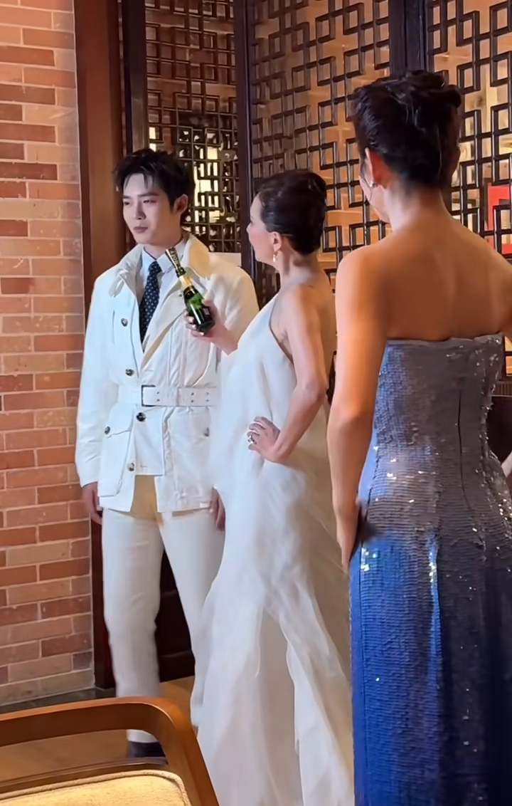 劉嘉玲身穿露背白色禮裙,站在C位與內(nèi)地男星于適及李冰冰合照,期間于適似乎因為與前輩合照的關(guān)系感到緊張,神情顯得格外局促,而劉嘉玲便拿起酒瓶指向于適,并說:“超級帥哥,不要這麼認(rèn)真嘛!”