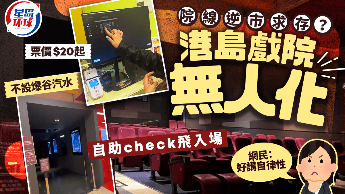 隨著科技進步,自助服務在香港逐漸普及,從便利店到交通工具均見其蹤影。 近日,一名網(wǎng)民在港島區(qū)一間商場內(nèi)發(fā)現(xiàn)一間無人戲院”,全程無職員駐守,購票、驗票及入場均由觀眾自助完成,票價低至$20,這一新興模式引起網(wǎng)民廣泛討論。